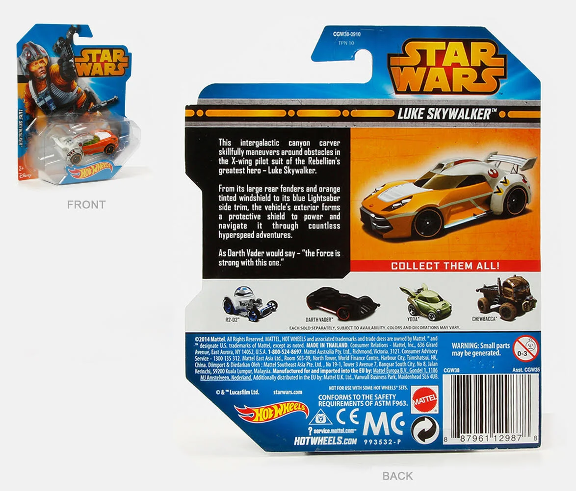 These packaging write-ups are not simply character bios — instead, they describe the vehicles as if they embody features from their respective characters while racing through an automotive world.